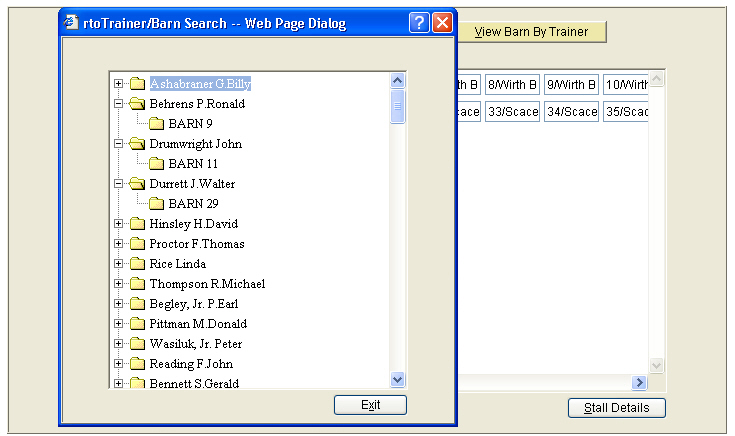 Stall Assignment allows the user to assign Trainers to stalls and maintain a barn list.